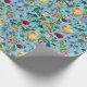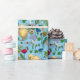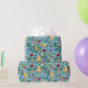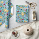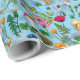 Papier Cadeau Poulets et fleurs sauvages sur le bleu bébé