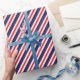 Faites n'importe quelle occasion joyeuse et brillante avec ce coloré rouge et marine bande de bonbons motif imprimé envelopper cadeau!