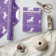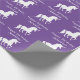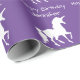 Papier d'emballage pourpre personnalisé d'anniversaire de filles de motif de licorne joli. Silhouettes blanches de licorne sur un arrière - plan pourpre lumineux. CUSTOMISEZ pour changer la couleur pourpre en n'importe quelle autre couleur. Le texte lit le "JOYEUX ANNIVERSAIRE" et le nom. Éditez pour personnaliser pour une fête d'anniversaire orientée de licorne d'amusement. Motif assez lunatique de licorne.