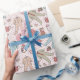 Ce joli papier d'emballage personnalisé pour Baby's First Christmas comporte un motif de costumes de bébé dessiné à la main, d'adorables animaux en peluche d'hiver (pingouin, rennes, ours en peluche), des bibs, des bouteilles, des pacificateurs et des cadeaux de Noël, le tout contre un rose très doux avec des petites étoiles éparpillées. Personnalisez avec le nom du bébé pour faire ce papier d'emballage uniquement le vôtre!