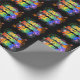 Ce design de papier d'emballage animé et animé sur le thème de l'anniversaire comprend le message "HAPPY BANTHDAY, ARIA" avec un motif coloré inspiré du spectre arc-en-ciel, et un feu d'artifice festif passionnant inspiré des motifs arrière - plans. Un papier d'emballage vibrant comme celui-ci pourrait être utilisé pour envelopper les cadeaux d'anniversaire qui sont donnés à quelqu'un nommé Aria. [~Z0000456]