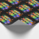 Ce papier d'emballage amusant et vibrant sur le thème de l'anniversaire a le message "HAPPY BANTHDAY, JAKE" avec un motif coloré à l'arc-en-ciel inspiré du spectre dégradé, et un feu d'artifice célébré animé inspiré des motifs arrière - plans. Un papier d'emballage amusant comme celui-ci pourrait être utilisé pour envelopper les cadeaux/cadeaux donnés en célébration de l'anniversaire de quelqu'un nommé Jake. [~Z0000456]
