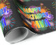 Ce design de papier d'emballage animé et animé sur le thème de l'anniversaire comprend le message "HAPPY BANTHDAY, MYA" avec un motif dégradé coloré inspiré du spectre arc-en-ciel, et un feu d'artifice festif passionnant inspiré des motifs arrière - plans. Le papier d'emballage excitant comme celui-ci pourrait être utilisé pour envelopper les cadeaux d'anniversaire ou les cadeaux qui sont donnés à quelqu'un nommé Mya. [~Z0000456]