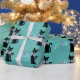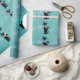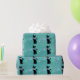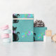 This wrapping paper roll is a teal colour with pretty black mid century cats wearing big pink bows and text Merry Christmas in bright colourful letters.
