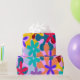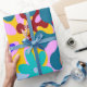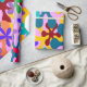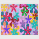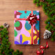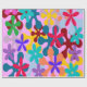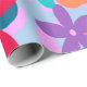Ce papier d'emballage a une conception rétro des années 1970 de fleurs qui se chevauchent en rouge, bleu, violet, jaune, orange et rouge. Coloré, lumineux et amusant.