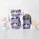 Emballage cadeau d'anniversaire avec le thème de la fête fille de gamer anime en violet et noir.