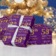 Ce design papier d'emballage comporte un message comme "HAPPY 58th BIRTHDAY", avec le "58th" ayant une apparence fausse/imitation or. Il porte également un nom personnalisé et un arrière - plan de couleur violette. Il pourrait peut-être être utilisé pour envelopper les cadeaux donnés pour le cinquante-huitième anniversaire de quelqu’un. [~Z0000134]