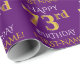 Ce design papier d'emballage comporte un message comme "HAPPY 73rd BANTHDAY", avec le "73rd" ayant une apparence fausse/imitation or. Il comporte également un nom qui peut être personnalisé, et un arrière - plan de couleur violet. Il pourrait peut-être être utilisé pour envelopper les cadeaux donnés pour le soixante-treize anniversaire de quelqu’un. [~Z0000134]
