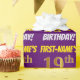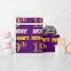 Ce papier d’emballage comporte un message comme "FIRST-NAME’S 19th BIRTHDAY!", avec le "19th" ayant une apparence de couleur fausse/imitation or, et avec le nom et "BIRTHDAY" dans une police amusante et audacieuse. Le nom peut être customisé, et l'arrière - plan est violet coloré. Un papier comme celui-ci pourrait peut-être être utilisé pour envelopper les cadeaux d'anniversaire donnés à quelqu'un pour célébrer son dix-neuvième anniversaire. [~Z0000206]