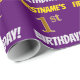 Ce design papier d’emballage comporte un message comme "FIRSTNAME’S 1st BANTHDAY!", avec le "1st" ayant une apparence de couleur fausse/imitation or, et avec le nom et "BANTHDAY" dans une police amusante et audacieuse. Le nom est personnalisable, et l'arrière - plan est violet de couleur. Un papier comme celui-ci pourrait peut-être être utilisé pour envelopper les cadeaux d'anniversaire donnés à quelqu'un pour célébrer son premier anniversaire. [~Z0000206]
