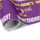 Ce papier d’emballage comporte un message comme "FIRST-NAME’S 2nd BIRTHDAY!", avec le "2nd" ayant une apparence de couleur fausse/imitation or, et avec le nom et "BIRTHDAY" dans une police amusante et audacieuse. Le nom peut être customisé, et l'arrière - plan est violet coloré. Un papier comme celui-ci pourrait peut-être être utilisé pour envelopper les cadeaux d'anniversaire donnés à quelqu'un pour célébrer leur deuxième anniversaire. [~Z0000206]