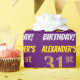 Ce design papier d’emballage comporte un message comme "31e anniversaire d’ALEXANDER!", avec le "31e" ayant une apparence de couleur fausse/imitation or, et avec le nom et "anniversaire" dans une police amusante et audacieuse. Le nom est personnalisable, et l'arrière - plan est violet de couleur. Un papier comme celui-ci pourrait peut-être être utilisé pour envelopper les cadeaux d'anniversaire donnés à quelqu'un pour célébrer leur trente et unième anniversaire. [~Z0000206]