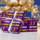 Ce papier d’emballage comporte un message comme "FIRST-NAME’S 33rd BANTHDAY!", avec le "33rd" ayant une apparence de couleur fausse/imitation or, et avec le nom et "BANTHDAY" dans une police amusante et audacieuse. Le nom peut être customisé, et l'arrière - plan est violet coloré. Un papier comme celui-ci pourrait peut-être être utilisé pour envelopper les cadeaux d'anniversaire donnés à quelqu'un pour célébrer leur trente-troisième anniversaire. [~Z0000206]