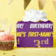 Ce papier d’emballage comporte un message comme "FIRST-NAME’S 3rd BIRTHDAY!", avec le "3rd" ayant une apparence de couleur fausse/imitation or, et avec le nom et "BIRTHDAY" dans une police amusante et audacieuse. Le nom peut être personnalisé, et l'arrière - plan est violet coloré. Un papier comme celui-ci pourrait peut-être être utilisé pour envelopper les cadeaux d'anniversaire donnés à quelqu'un pour célébrer leur troisième anniversaire. [~Z0000206]