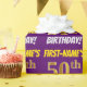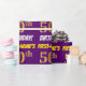 Ce papier d’emballage comporte un message comme "FIRST-NAME’S 50th BIRTHDAY!", avec le "50th" ayant une apparence de couleur fausse/imitation or, et avec le nom et "BIRTHDAY" dans une police amusante et audacieuse. Le nom peut être personnalisé, et l'arrière - plan est violet coloré. Un papier comme celui-ci pourrait peut-être être utilisé pour envelopper les cadeaux d'anniversaire donnés à quelqu'un pour célébrer son cinquantième anniversaire. [~Z0000206]