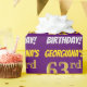 Ce design papier d’emballage comporte un message comme "63e anniversaire de GEORGIANA!", avec le "63e" ayant une apparence de couleur fausse/imitation or, et avec le nom et "anniversaire" dans une police amusante et audacieuse. Le nom est personnalisable, et l'arrière - plan est violet de couleur. Un papier comme celui-ci pourrait peut-être être utilisé pour envelopper les cadeaux d'anniversaire donnés à quelqu'un pour célébrer leur soixante-troisième anniversaire. [~Z0000206]
