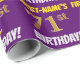 Ce papier d’emballage comporte un message comme "FIRST-NAME’S 71st BANTHDAY!", avec le "71st" ayant une apparence de couleur fausse/imitation or, et avec le nom et "BANTHDAY" dans une police amusante et audacieuse. Le nom peut être personnalisé, et l'arrière - plan est violet coloré. Un papier comme celui-ci pourrait peut-être être utilisé pour envelopper les cadeaux d'anniversaire donnés à quelqu'un pour célébrer leur soixante-et-onzième anniversaire. [~Z0000206]