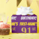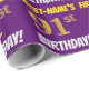 Ce papier d’emballage comporte un message comme "FIRST-NAME’S 91st BANTHDAY!", avec le "91st" ayant une apparence de couleur fausse/imitation or, et avec le nom et "BANTHDAY" dans une police amusante et audacieuse. Le nom est personnalisable, et l'arrière - plan est violet de couleur. Un papier comme celui-ci pourrait peut-être être utilisé pour envelopper les cadeaux d'anniversaire donnés à quelqu'un pour célébrer leur quatre-vingt-dix-unième anniversaire. [~Z0000206]