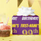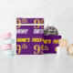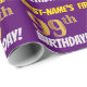 Ce papier d’emballage comporte un message comme "FIRST-NAME’S 99th BIRTHDAY!", avec le "99th" ayant une apparence de couleur fausse/imitation or, et avec le nom et "BIRTHDAY" dans une police amusante et audacieuse. Le nom peut être customisé, et l'arrière - plan est violet coloré. Un papier comme celui-ci pourrait peut-être être utilisé pour envelopper les cadeaux d'anniversaire donnés à quelqu'un pour célébrer leur quatre-vingt-dix-neuvième anniversaire. [~Z0000206]