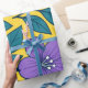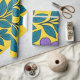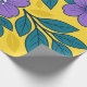 Papier Cadeau Purple Flowers & Teal Leaves on Yellow Background