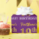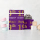 Ce design papier d’emballage comporte un message comme "19e anniversaire de prénom!", avec le "19e" ayant une apparence de couleur fausse/imitation or. Le nom peut être personnalisé, et l'arrière - plan est violet coloré. Il pourrait peut-être être utilisé pour envelopper les cadeaux donnés pour le dix-neuvième anniversaire de quelqu’un. [~Z0000182]