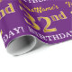 Ce design papier d’emballage comporte un message comme "32e anniversaire de prénom!", le "32e" ayant une apparence de couleur fausse/imitation or. Le nom peut être personnalisé, et l'arrière - plan est violet coloré. Il pourrait peut-être être utilisé pour envelopper les cadeaux donnés pour le trente-deuxième anniversaire de quelqu’un. [~Z0000182]