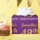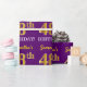 Ce design papier d’emballage comporte un message comme "48e anniversaire de Samantha!", avec le "48e" ayant une apparence de couleur fausse/imitation or. Le nom peut être customisé, et l'arrière - plan est violet coloré. Il pourrait peut-être être utilisé pour envelopper les cadeaux donnés pour le quarante-huitième anniversaire de quelqu’un. [~Z0000182]