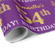 Ce design papier d’emballage comporte un message comme "54e anniversaire de Samantha!", avec le "54e" ayant une apparence de couleur fausse/imitation or. Le nom peut être personnalisé, et l'arrière - plan est violet coloré. Il pourrait peut-être être utilisé pour envelopper les cadeaux donnés pour le cinquante-quatrième anniversaire de quelqu’un. [~Z0000182]