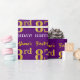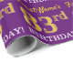 Ce papier d’emballage comporte un message comme "83e anniversaire de prénom!", avec le "83e" ayant une apparence de couleur fausse/imitation or. Le nom peut être personnalisé, et l'arrière - plan est violet coloré. Il pourrait peut-être être utilisé pour envelopper les cadeaux donnés pour le quatre-vingt-troisième anniversaire de quelqu’un. [~Z0000182]