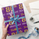 Ce design papier d’emballage comporte un message comme "86e anniversaire de prénom !", le "86e" ayant une apparence de couleur fausse/imitation or. Le nom peut être personnalisé, et l'arrière - plan est violet coloré. Il pourrait peut-être être utilisé pour envelopper les cadeaux donnés pour le quatre-vingt-sixième anniversaire de quelqu’un. [~Z0000182]