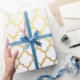 Papier Cadeau Quatrefoil or blanc Art Déco Net