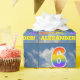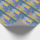 Ce design de papier d'emballage passionnant, amusant et vibrant sur le thème de l'anniversaire présente un ciel bleu avec des nuages motif arrière - plan, un grand nombre "6" et "HAPPY BANTHDAY", tous deux ayant un motif dégradé multicolore inspiré du spectre arc-en-ciel, et un nom personnalisé. Un papier d'emballage amusant comme celui-ci pourrait être utilisé pour envelopper des cadeaux donnés à quelqu'un pour célébrer leur sixième anniversaire. [~Z0000372]