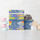Ce papier d'emballage captivant, excitant et amusant sur le thème de l'anniversaire présente un ciel bleu avec des nuages motif arrière - plan, un grand nombre "7" et "HAPPY BANTHDAY", tous deux ayant un motif dégradé multicolore inspiré du spectre arc-en-ciel, et un nom personnalisable. Un papier d'emballage à thème d'anniversaire comme celui-ci pourrait être une façon amusante d'envelopper un cadeau ou un cadeau donné à quelqu'un qui célèbre son septième anniversaire. [~Z0000372]