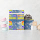 Ce papier d'emballage attrayant, amusant et passionnant sur le thème de l'anniversaire présente un arrière - plan motif ciel bleu nuageux, un grand nombre "9" et "HAPPY BANTHDAY", tous deux ayant un motif dégradé multicolore inspiré du spectre arc-en-ciel, et un nom modifiable. Envelopper du papier comme celui-ci peut être une façon amusante d'envelopper un cadeau d'anniversaire ou un cadeau donné à quelqu'un qui célèbre son 9e anniversaire. [~Z0000372]
