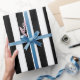 Un décor noir et blanc de fête de rayures de rétro style de mode horizontale ou verticale sont un style classique moderne de conception graphique qui se dirigent toujours vers un grand cadeau fait sur commande pour vous-même ou pour quelqu'un spécial sur votre liste, ceux-ci sont sûr de faire une impression à toutes les occasions de fête.