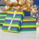 Papier Cadeau Rayures jaunes, bleues et vertes