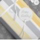 Papier enveloppant présentant un design contemporain avec une combinaison harmonieuse de rayures jaune ensoleillé, gris moyen et blanc immaculé, créant un impact visuel frappant qui ne manquera pas de séduire tout destinataire.
