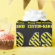 Ce design amusant et audacieux de papier d'emballage à thème d'anniversaire comporte un grand nombre "49", avec un motif rayé jaune et noir. Il comporte également le message "Joyeux 49ème anniversaire," et un nom personnalisé. Le fond est de couleur noire. Du papier d'emballage sur le thème de l'anniversaire comme celui-ci pourrait être un moyen amusant d'emballer un cadeau ou un présent offert à quelqu'un qui fête son quarante-neuvième anniversaire.