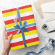 Papier Cadeau Rayures rouges, jaunes et blanches