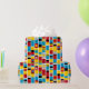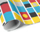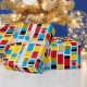 Un design composé de rayures avec bandes peintes à la main, blocs et taches de couleur dans les tons de rouge, ambre, or profond, bleu, gris noir et blanc. Inspiré de totems peints.