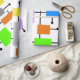 Ce papier d'emballage est recouvert d'un design moderne du milieu du siècle d'une variété de rectangles rétro reliés entre eux. Coloré et amusant !