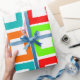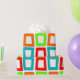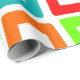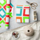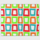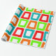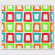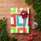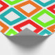 Ce papier d'emballage a un design moderne du milieu du siècle de rectangles torsadés répétitifs en rouge, orange, vert et turquoise.