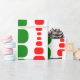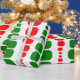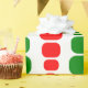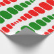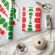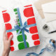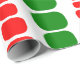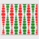 Ce papier d'emballage de Noël a un design moderne du milieu du siècle de rectangles ronds rouges et verts de taille croissante et décroissante, tournant verticalement sur un champ de blanc.