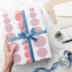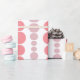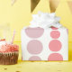 Ce papier d'emballage a un design moderne du milieu du siècle de rectangles ronds roses et lavande en taille croissante et décroissante, tourné verticalement sur un champ de blanc.