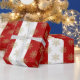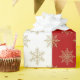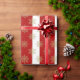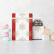 A Colorful Red And White Striped Holiday Wrapping Paper With Golden Snowflakes