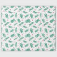 Papier d'emballage blanc festif imprimé avec un motif classique de feuilles vert aquarelle et de baies rouges. Parfait pour emballer les cadeaux de Noël. Bon choix pour les amateurs d'hiver, de bois et de style rustique.