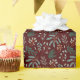 Whimsical Christmas pattern wrapping paper featuring illustration of holiday botanicals.