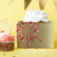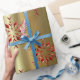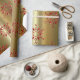 Un élégant papier d'emballage de Noël avec un motif d'étoiles rouges (ou flocons de neige) éparpillé sur un arrière - plan doré pour ajouter une touche festive et sophistiquée à vos cadeaux de Noël cette année.