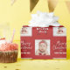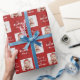 Christmas gift wrapping paper feature modern calligraphy merry Christmas and happy new year, family name typography, with personalized two photos in burgundy, red and white.