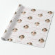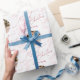 Christmas gift wrapping paper feature modern Merriest Christmas script and pine tips, with personalized family name and two photos in red and pink. simple and elegant.